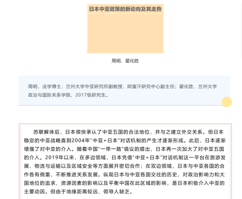 Abstract: After the collapse of the Soviet Union, Japan quickly recognized the legal status of the five Central Asian countries and established diplomatic relations with them. However, Japan's stable Central Asia strategy did not take shape until the emergence of the "Central Asia + Japan" dialogue mechanism in 2004. Since then, Japan has gradually strengthened its involvement in Central Asia. With China's "one belt, one road" initiative, Japan has once again stepped up its involvement in the five Central Asian countries. Since 2019, in the multilateral field, Japan has carried out close cooperation in tourism development, logistics and transportation, and regional security with the platform of "Central Asia + Japan" dialogue mechanism; in the bilateral field, Japan has focused on cooperation with Central Asian countries, and constantly promoted the development of relations. Throughout the history of Japan's contacts with Central Asian countries, Japan's pursuit of political influence and power status, the influence of resource factors and the balance of China's influence in the region are the main reasons for Japan's active involvement in Central Asia.