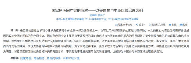 Abstract: As a classical theory of sociology and psychology, the role theory could also be employed to explain regional governance activities of states. This paper attempts to explore how to understand the inter-role conflicts faced by states in international politics. Inter-role conflicts are characterized by overload of role expectation and ambiguity of role expectation, correspondingly, role learning and role adaptation could solve these conflicts. Based on existing analysis and by discussing the process of U.S.'s role enactment of regional governance in Central Asia, we find that inter-role conflicts of U.S. in Central Asia are specifically manifested as overload and ambiguity of role expectations. In order to cope with these conflicts, the US has adopted two ways including role learning and role adaptation, of which the latter is better in terms of effects. By discussing conflicts and adjustments of the US in regional governance, we could have a better understanding of national role enactment.