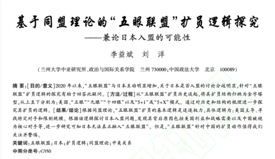 Key words: Five Eyes Alliance; Japan; expansion logic; alliance theory; China-US relations