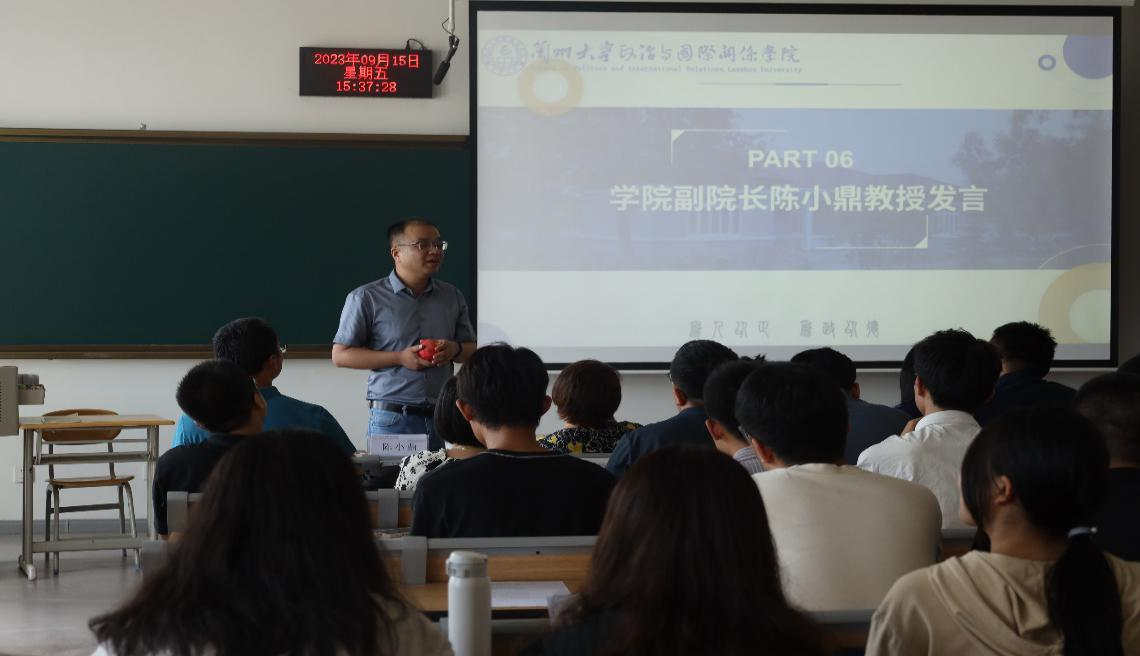 在榆中校区秦岭堂B416举行了2023级研究生迎新大会。本次大会主题为“只争朝夕,不负韶华”。党委书记常虹老师、副院长陈小鼎教授、2023级研究生新生班主任周长鲜副教授、学院教师代表周明教授、李益斌副教授、曹伟副教授、肖涵副教授、罗轶轩博士、米鹏举博士、张维维博士、研究生辅导员雷环瑞及全体2023级研究生新生参加了会议。本次大会由学院党委副书记贾海燕老师主持。