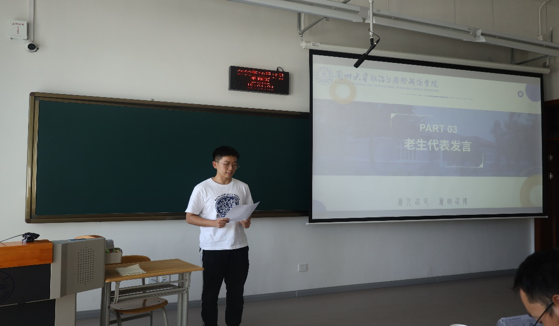 紧接着,新生代表贾永刚结合自己的支教和工作经历,向同学们讲述了要到祖国最需要的地方和保持吃苦耐劳精神的重要性。他强调榆中校区是一个学习和科研的“宝地”,希望同学们保持健康积极的心态。其后,新生代表李东宁分享了自己为何选择兰大的理由以及如何度过有意义的研究生三年,并为同学们送上祝愿。