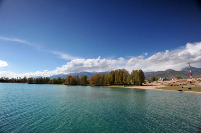 △吉尔吉斯斯坦伊塞克湖州的伊塞克湖。