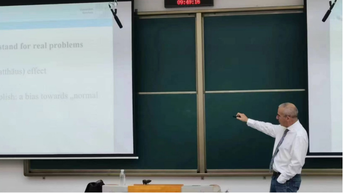 然后,Schneider教授指出,科学研究的成功与否和研究者所处的学术环境、所享有的学术资源、与外部学术界的交流贯通及其输出成果所获认可程度等因素呈正相关关系。康斯坦茨大学以提供学术休假和德国精英大学研究经费等途径聘请高质量人才,从而促进系所进行更多科学研究、发表更多高水平论文。最后,Schneider教授鼓励同学们在此后的学术研究中要多多听取并接受他人意见建议,设立远大目标并为之持续努力,但切忌急功近利、因小失大,更应戒骄戒躁,仰观日月,同时脚踏实地。至此,本次讲座圆满结束。